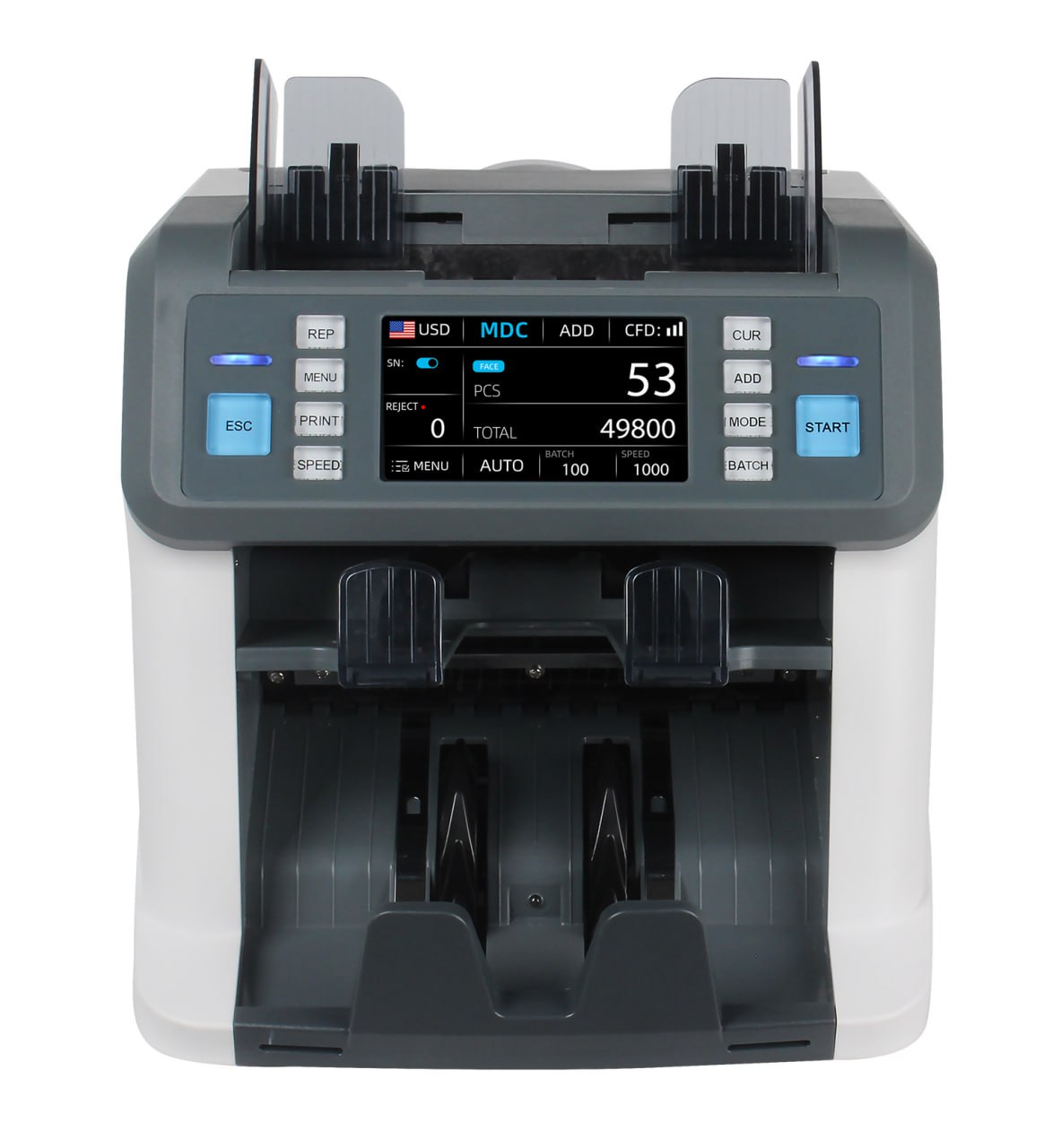 Heavy duty multi-currency sorter and counter. Handles mixed denominations with ease for high volume environments.
